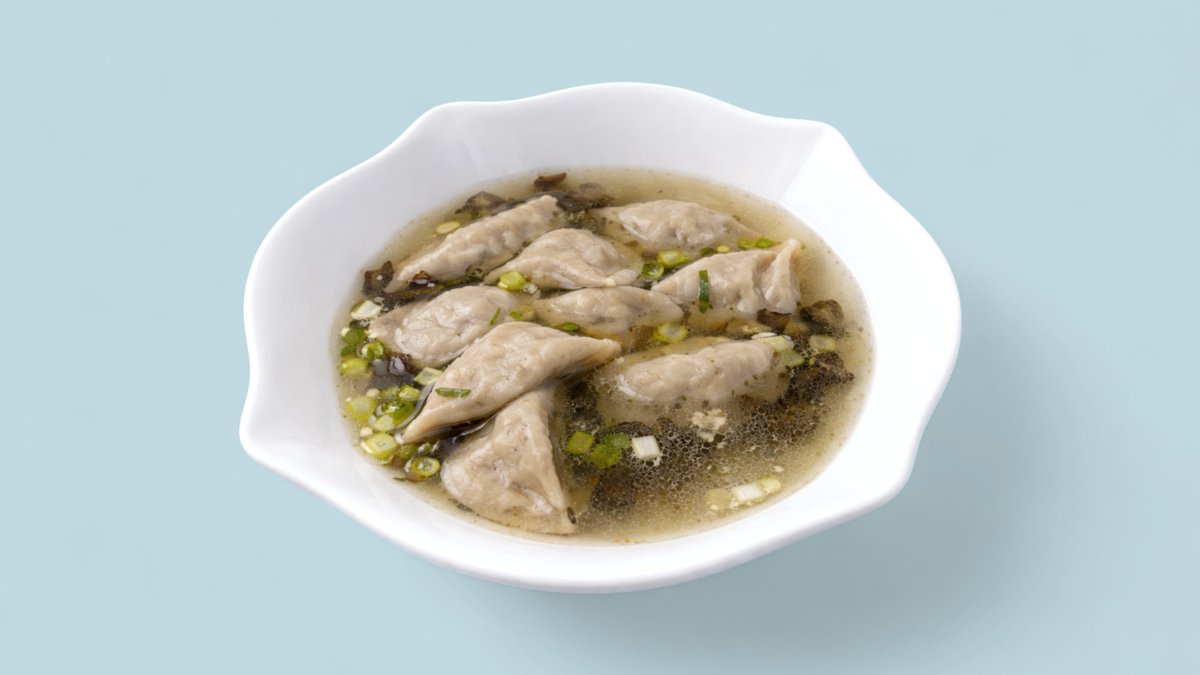 mit Schweinefleisch, Lauch, Ingwer und diversen Gewürzen in einer fettreduzierten Brühe