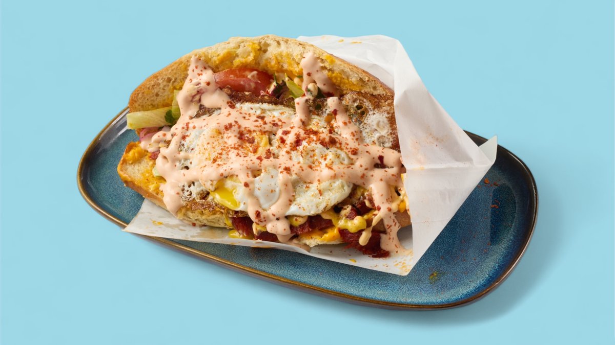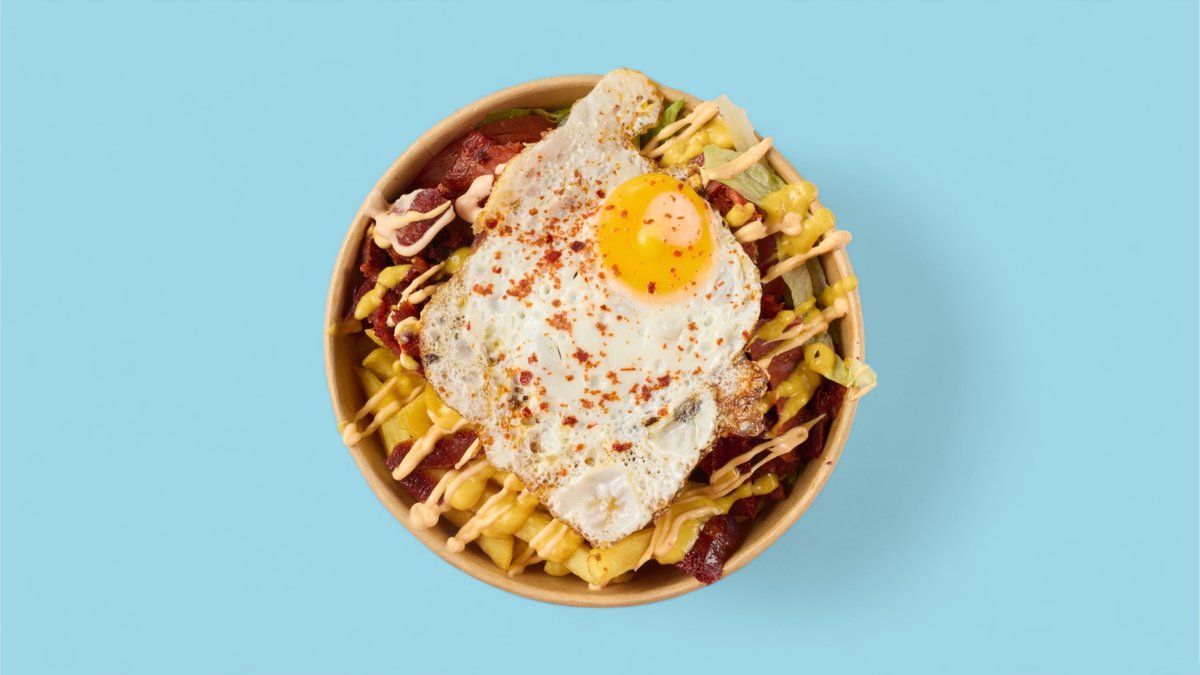 mit Sucuk-Döner, Pommes frites, Salat, Tomaten, Zwiebeln und Spiegelei