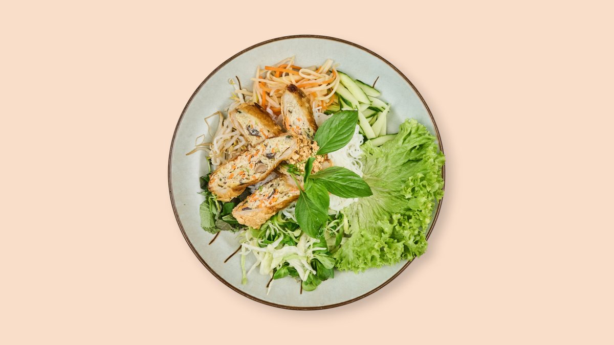 hausgemachte Frühlingsrollen mit fein gehacktem Hähnchen, Garnelen, Morcheln, Karotten, Shiitake und Glasnudeln