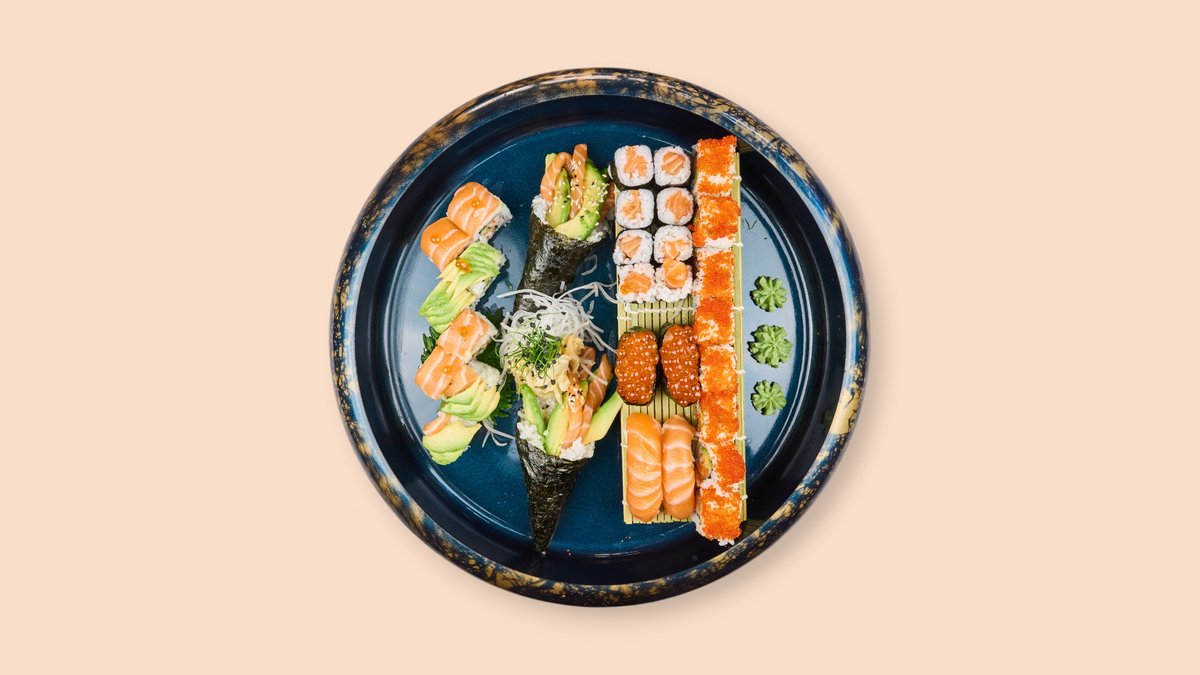 mit Lachs, Goma Wakame, Avocado, Shiso und in einer Größe deiner Wahl
