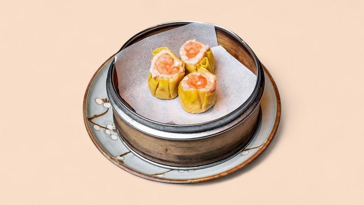 gedämpfte Teigtaschen gefüllt mit Schweinefleisch und Garnelen