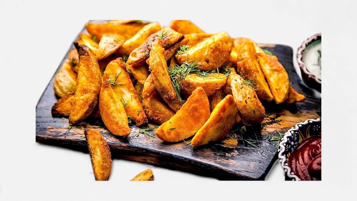 mit Hähnchenbrust, Pommes frites, Knoblauch, Krautsalat und Essiggurken