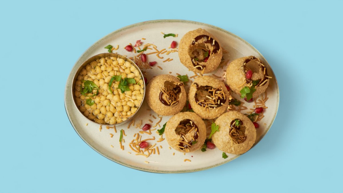 Pav belegt mit frittierten Kartoffelbratlingen und Chutney