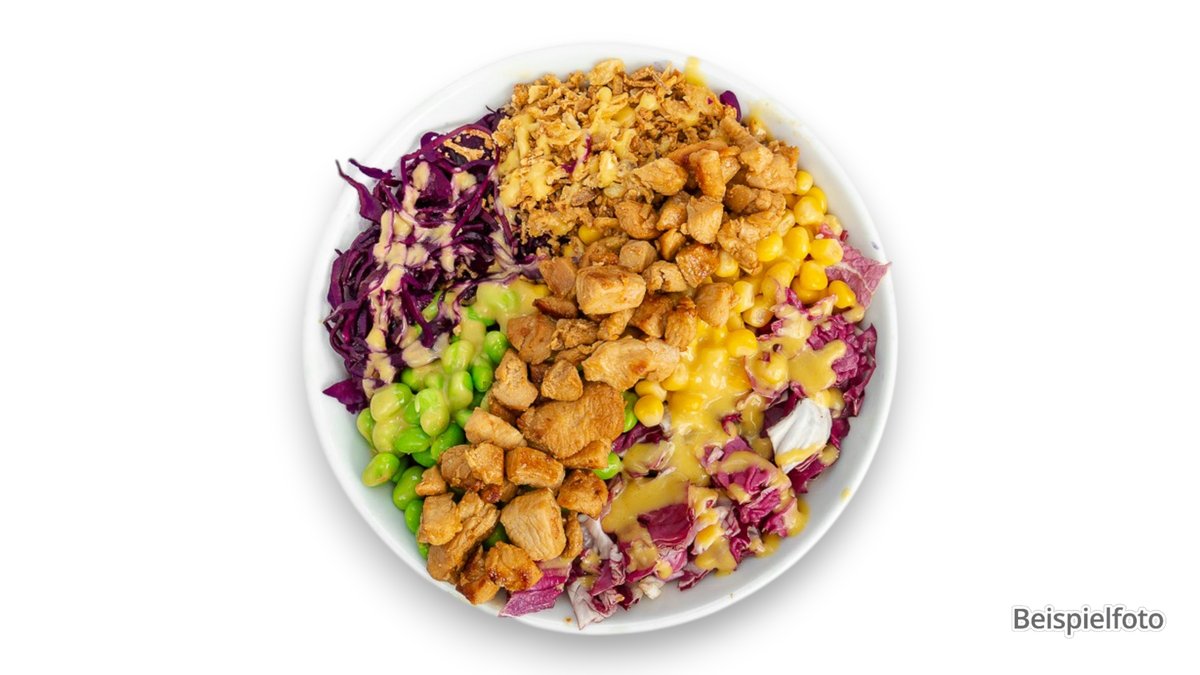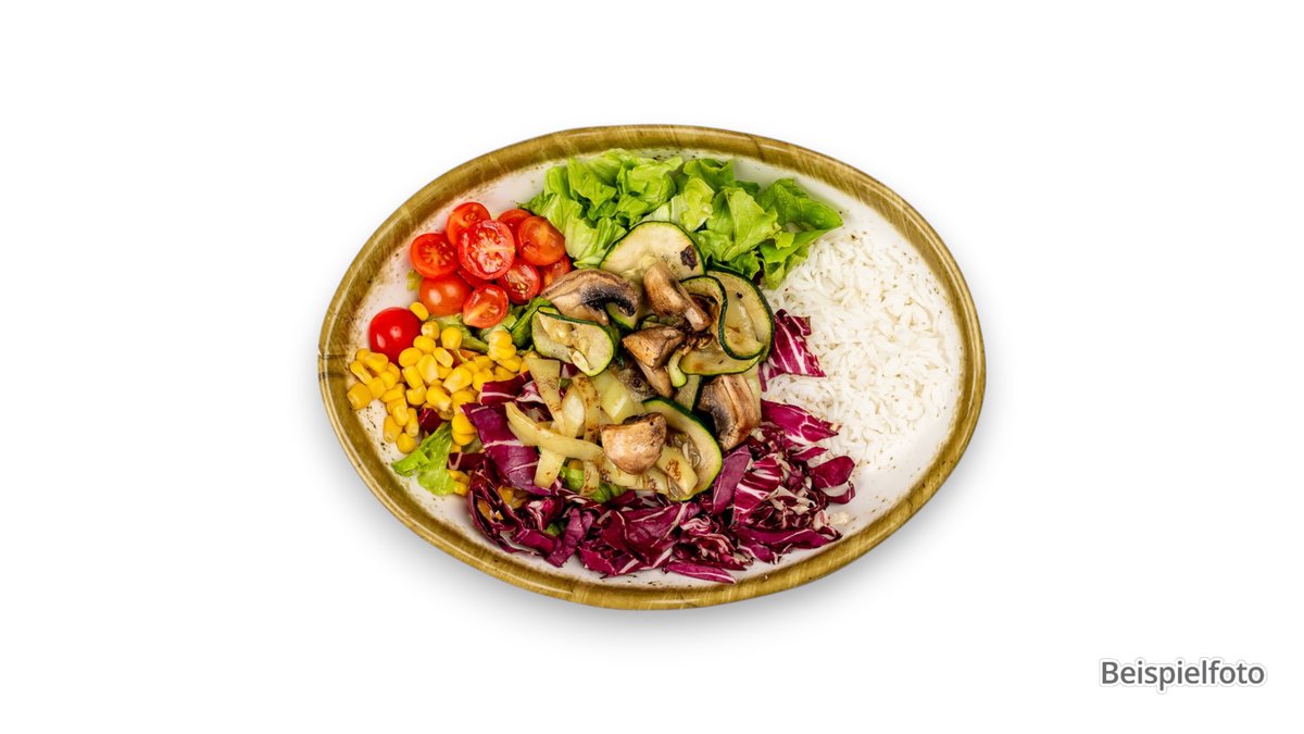 mit Salat, einer Soße und einer Zutat deiner Wahl
