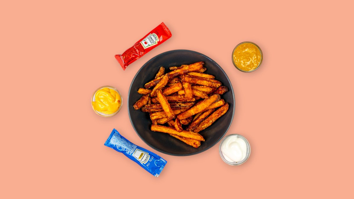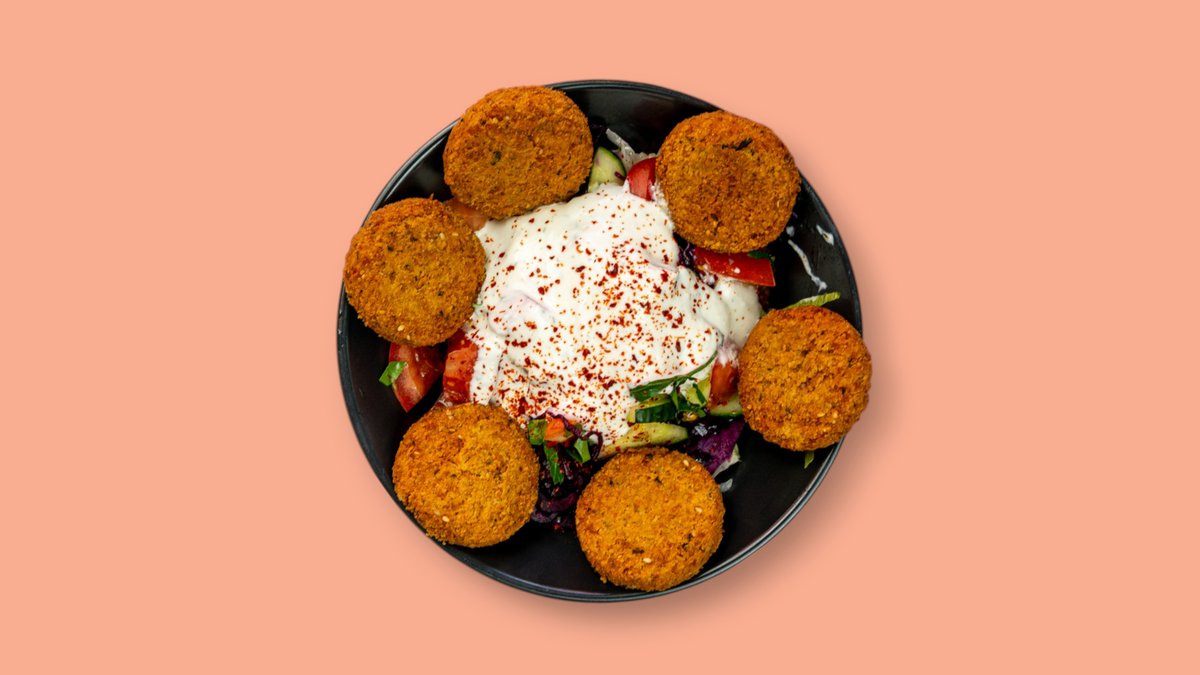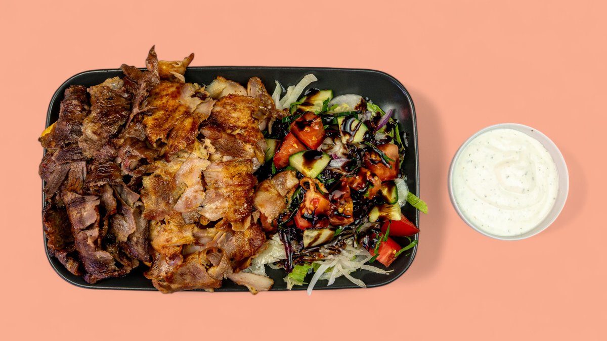 Tellerportion mit Salat, einer Soße und einer Beilage deiner Wahl