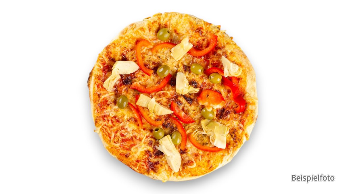 mit Schinken, Champignons, Peperoni, Artischocken und Oliven