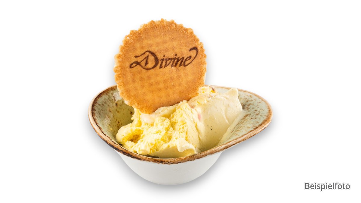 Eine Eiscreme mit gesalzenem Karamell, durchzogen von Karamellsoße und knusprigen Karamellstückchen.