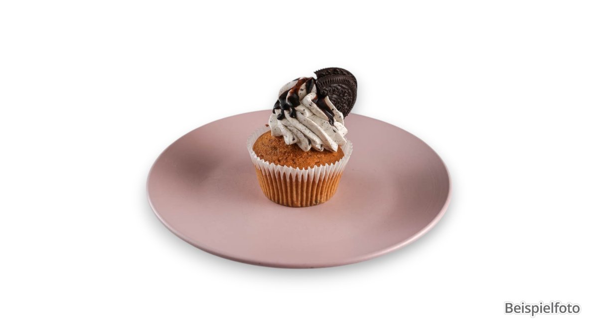 110 g Cacao-Muffin mit Vanillecreme Das Gericht wurde mit Schokolade zubereitet und kann Spuren von verschiedenen Nüssen enthalten