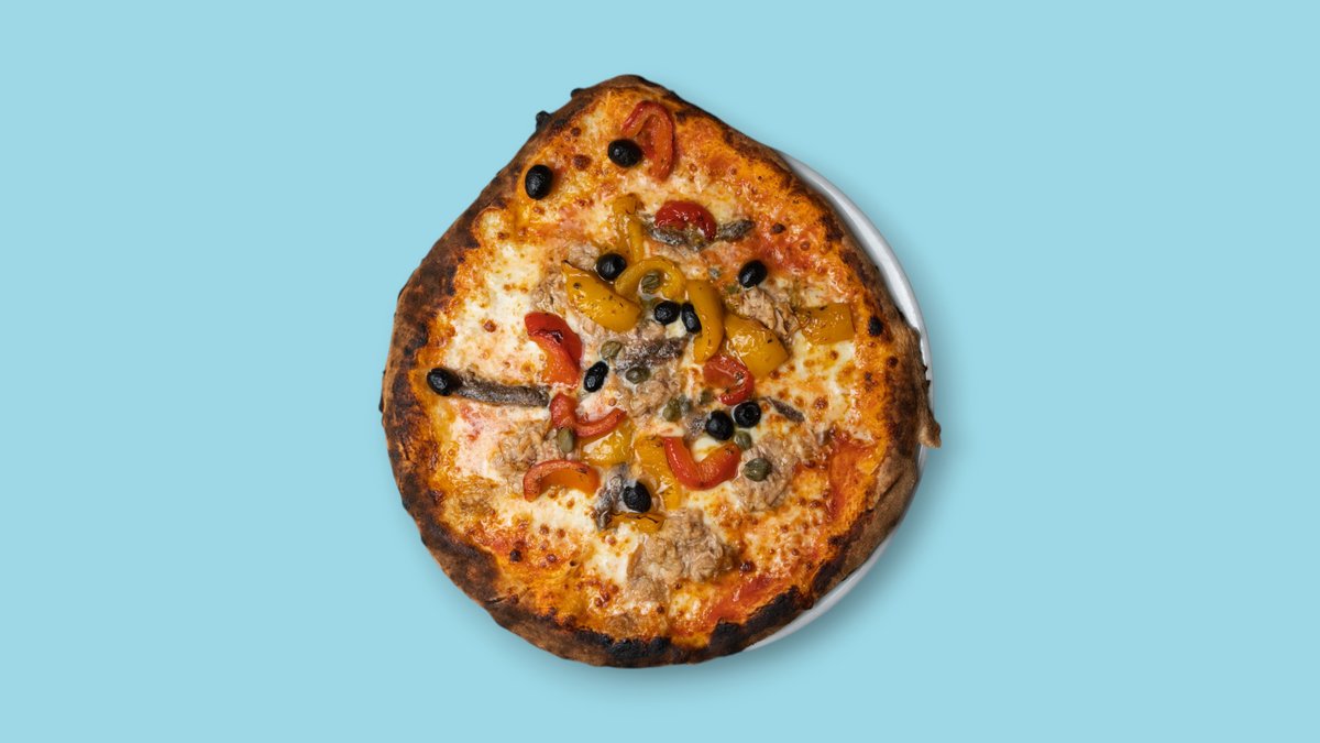 mit Paprika, Sardellen, Kapern, Oliven und Thunfisch