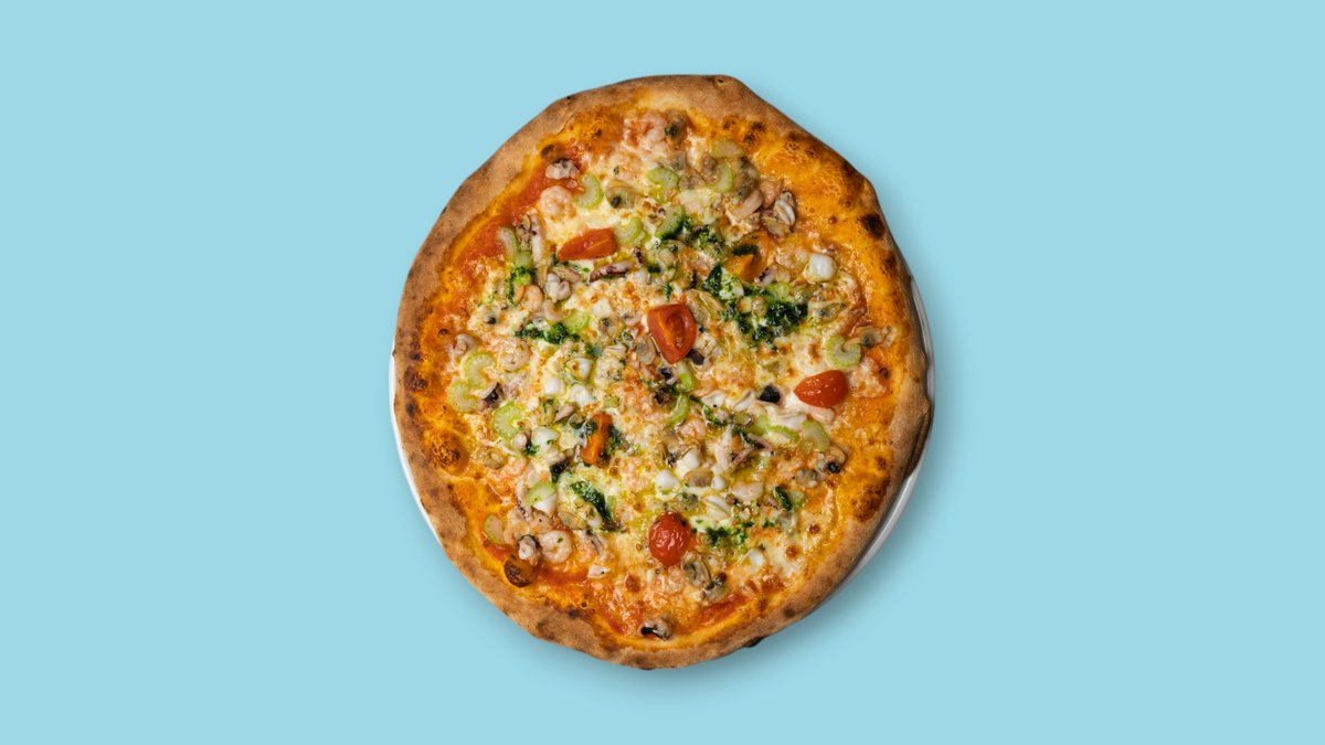 mit Vorderschinken (Schwein), Champigons, Artischocken, Peperoni und Oliven