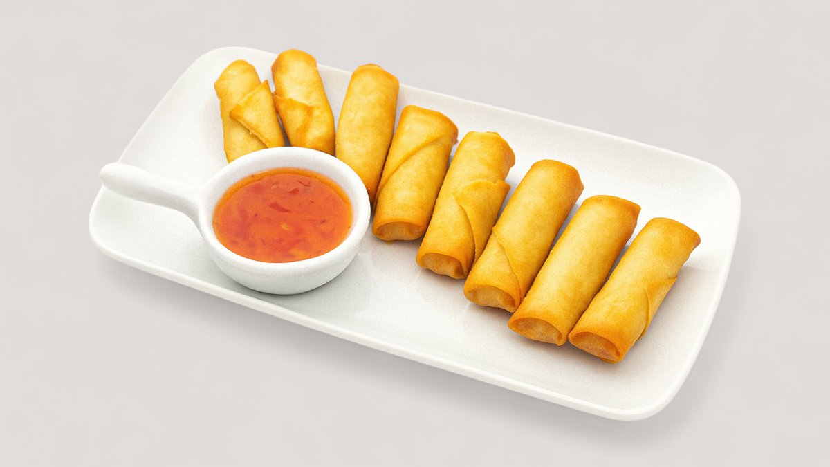 8 Stück frittierte Minirollen, serviert mit einem süßen Chili-Dip