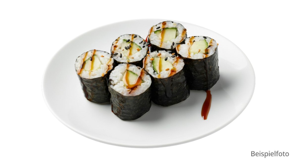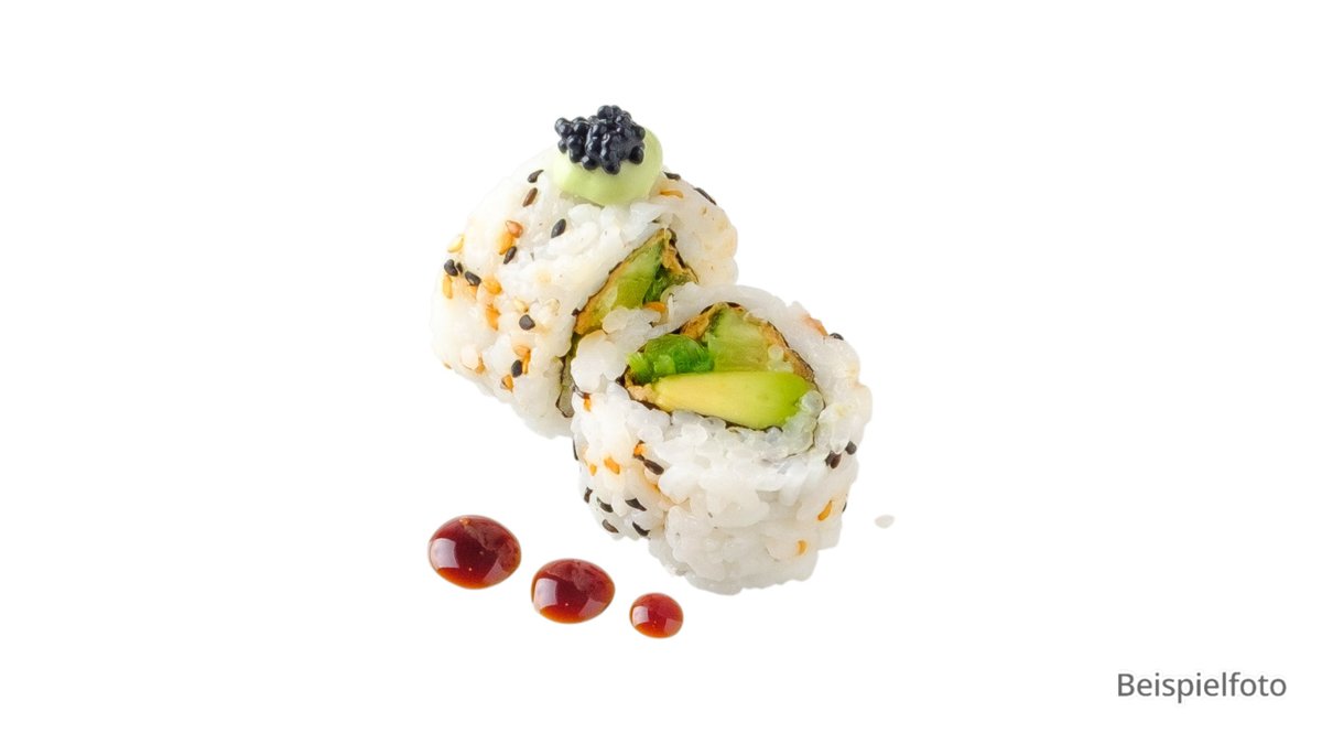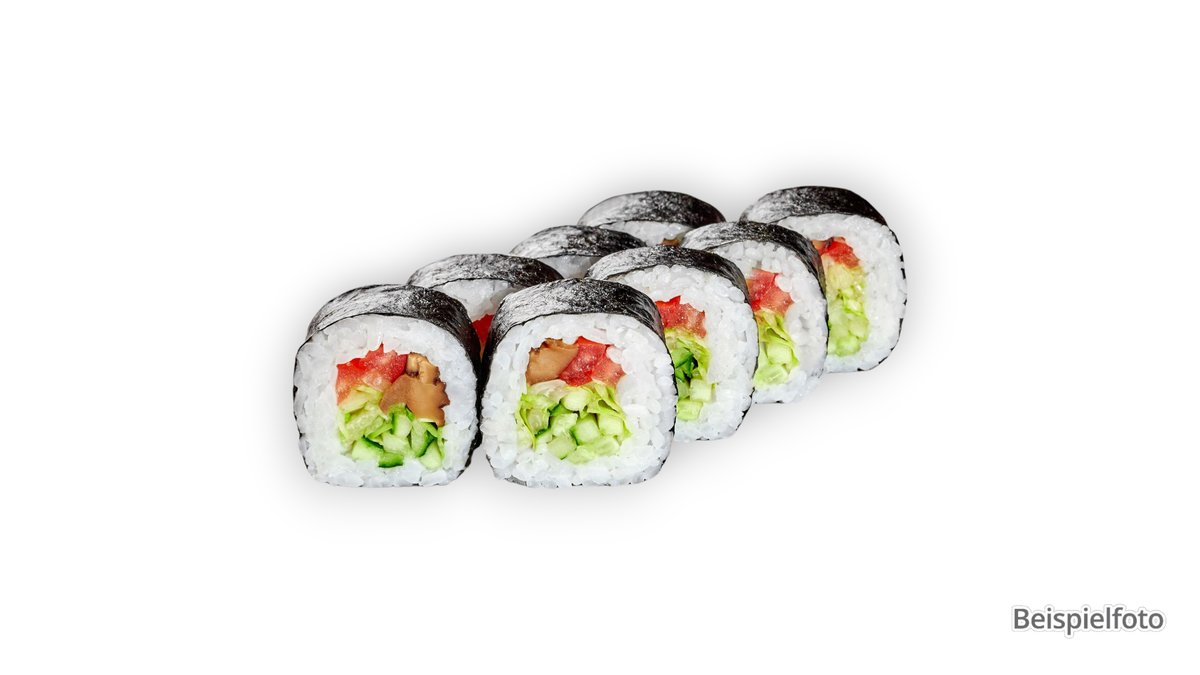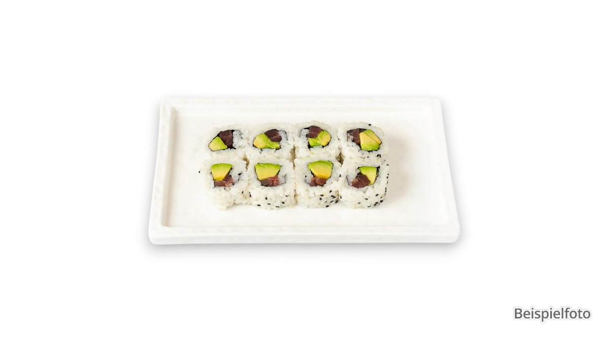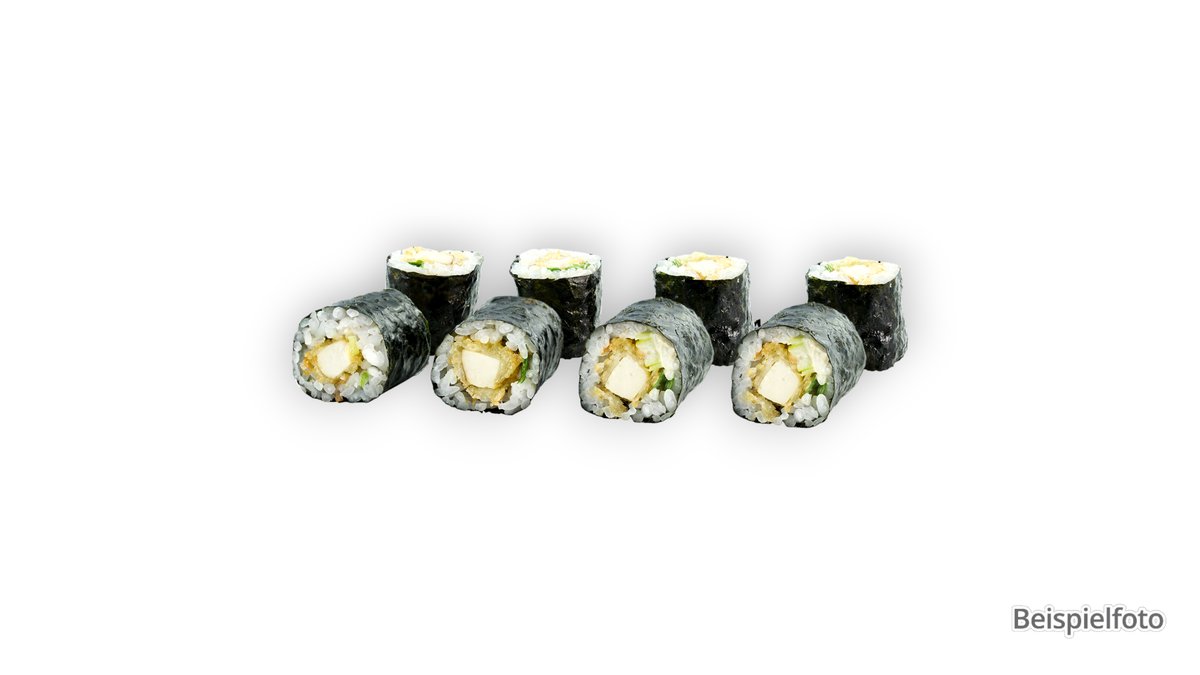 8x Maki Avocado 6x Futo Eierstich, Gurken, Salat und Pilze (F11) 8x Uramaki Tofutasche, Gurken, Frischkäse, Sesam