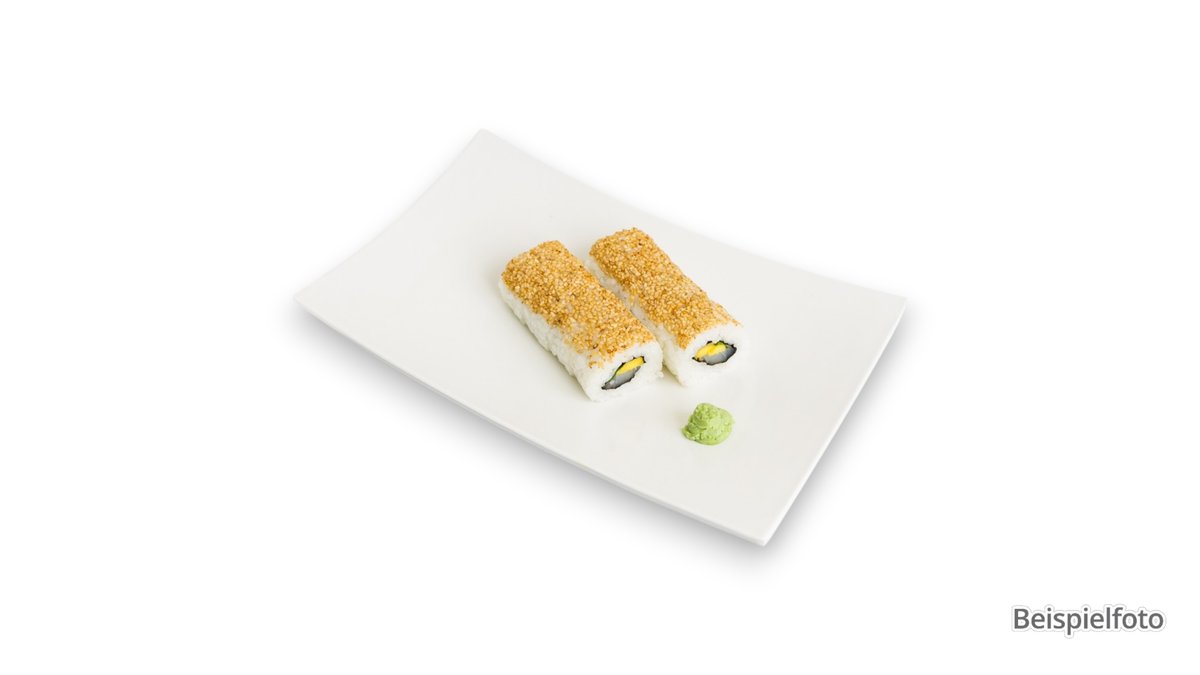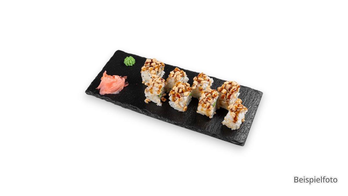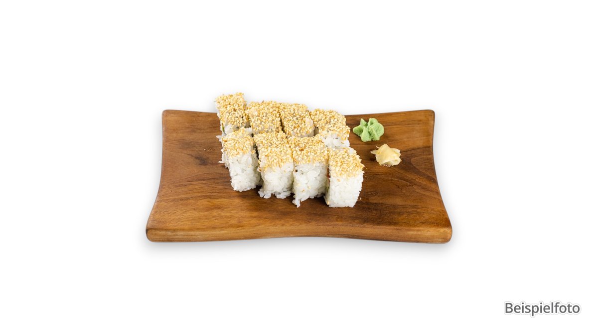 4x Maki Gurken 4x Maki Mango 4x Maki Avocado 4x Maki Tofutasche 8x Crunchy Uramaki mit Gurken, Avocado, Frischkäse und Sesam