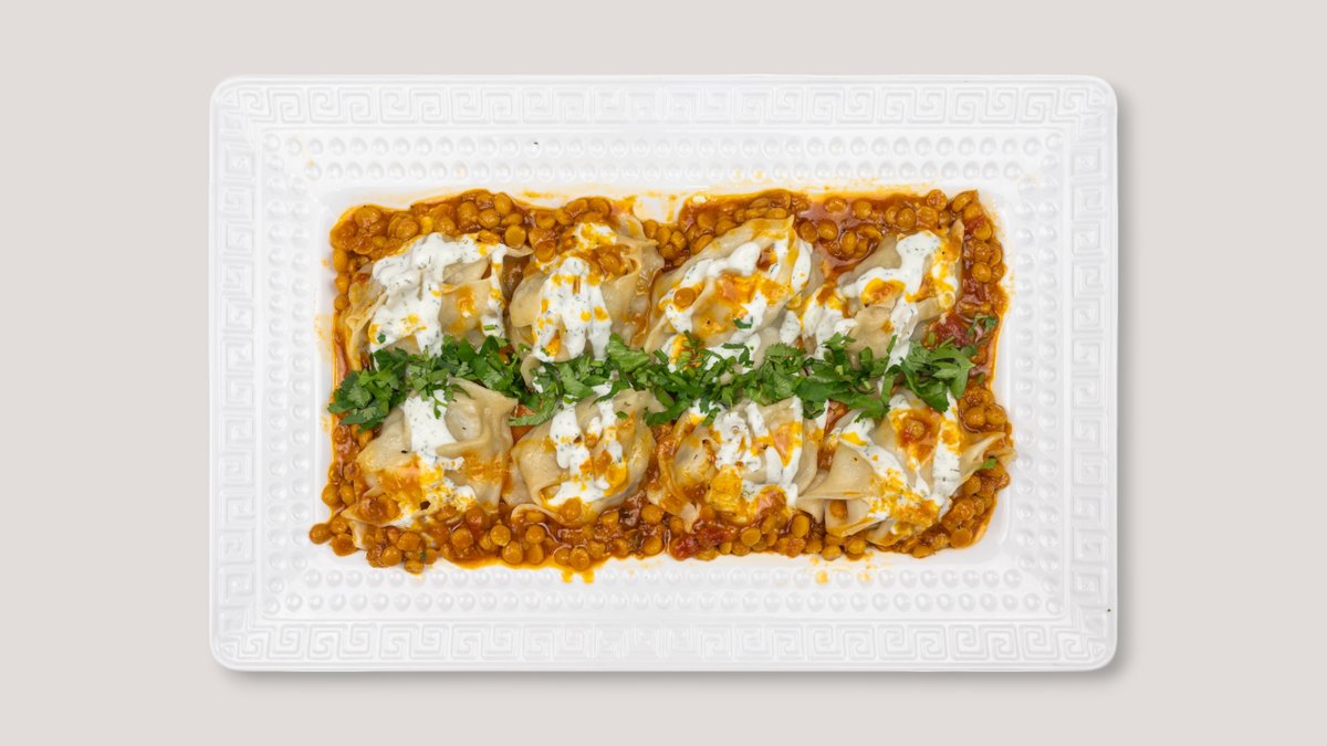 kleine gedampfte Teigtaschen, gefüllt mit Lauch und Zwiebeln
