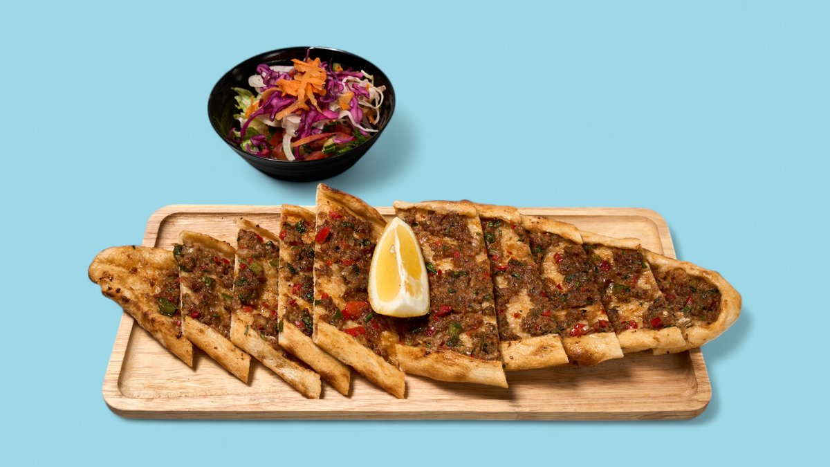 türkische Pizza mit Hackfleischmischung (Kalbfleisch)