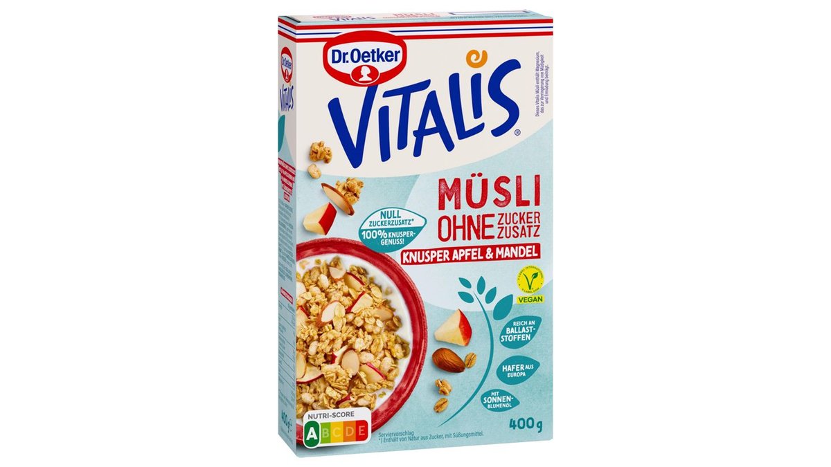 Dr. Oetker Vitalis Müsli ohne Zuckerzusatz Knusper Apfel & Mandel, 400 g