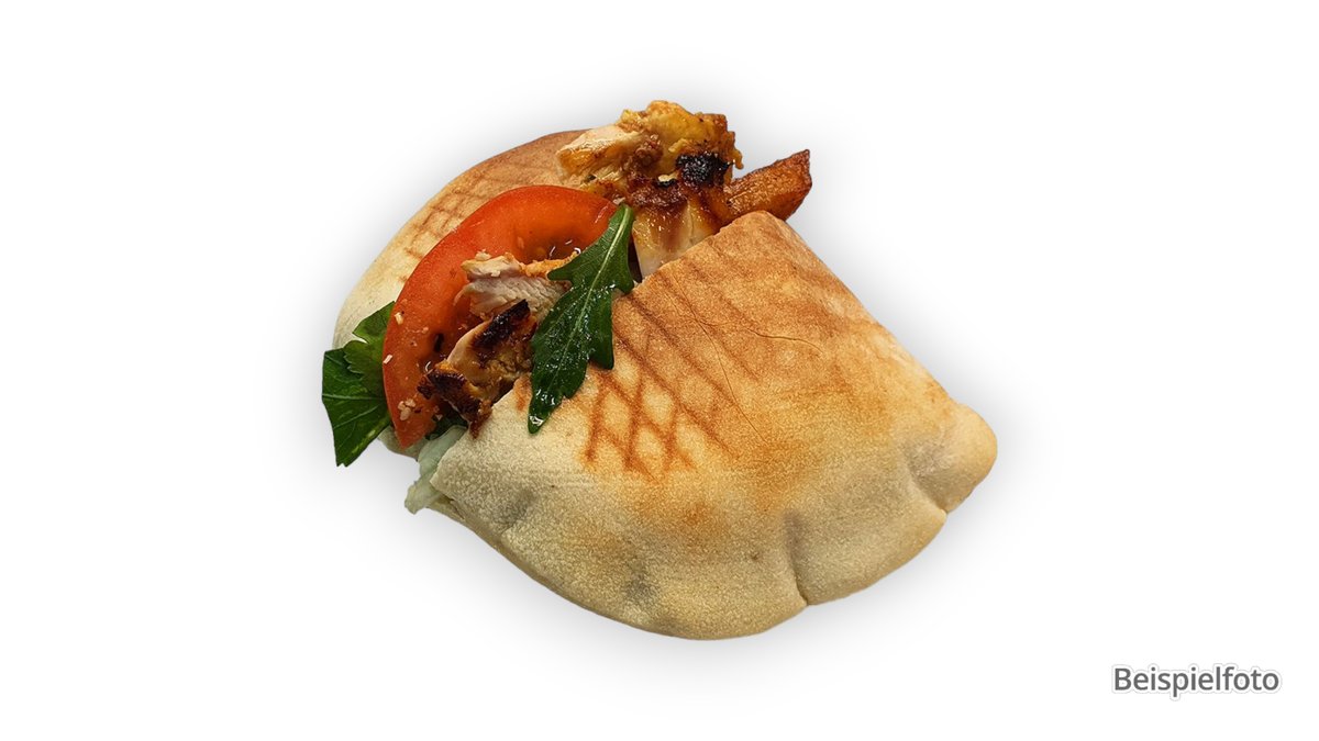 im Fladenbrot mit Salat, Weichkäse und Soße