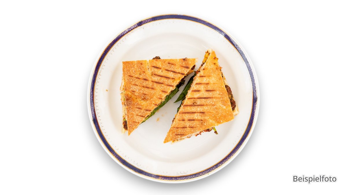 mit Grillkäse, Eisbergsalat, Tomaten, Gurken und Soße