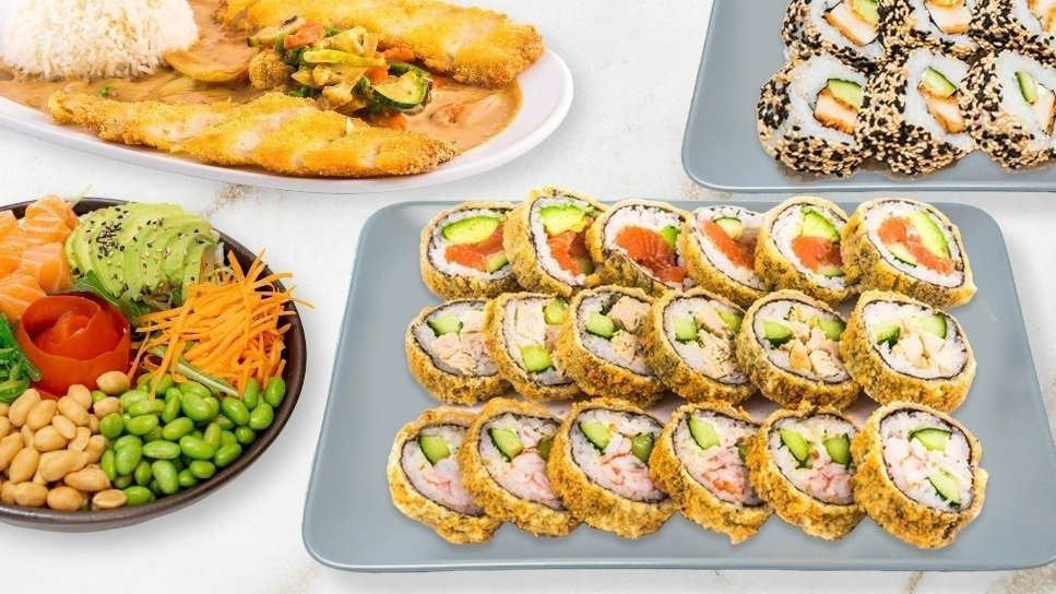 Sushi, Pho & Wok- mit Sushi-Rollen, Bowls, Currys und Tempura, vielen vegetarischen und veganen Optionen.