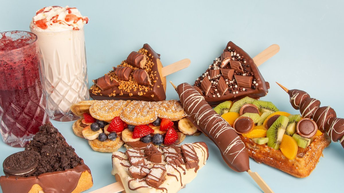 Gönn dir eine Auswahl an köstlich frisch zubereiteten Waffeln 🧇