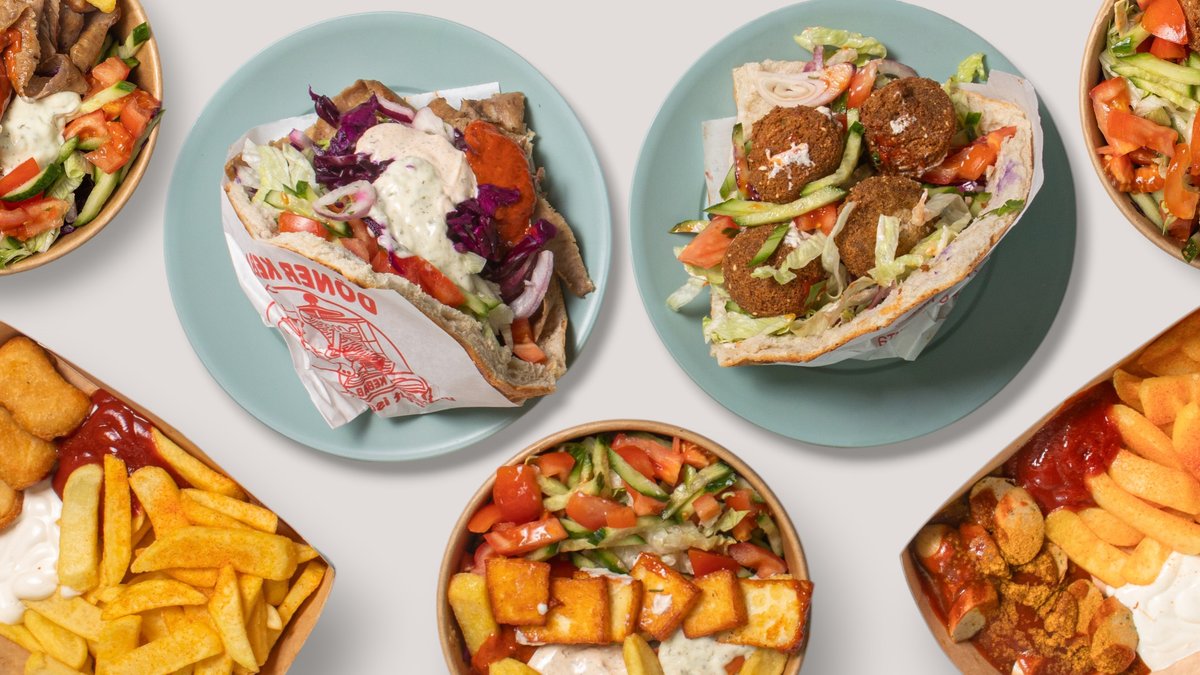 Döner, Burger, Pizza und Falafel. Große Auswahl an warmen Gerichten und Tellern