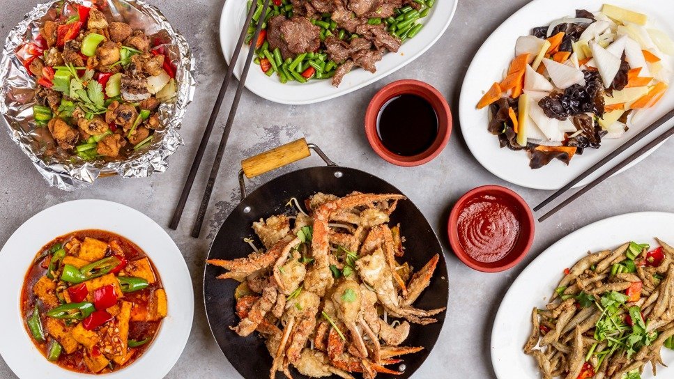 Chinesische Klassiker mit Reis und Nudeln im Mittelpunkt