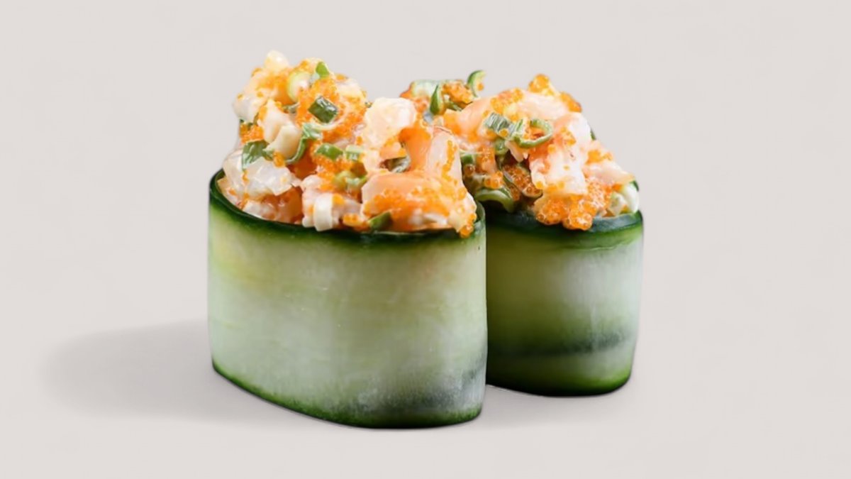 mit Tobiko, Avocado, scharfer Mayonnaise und Garnelen