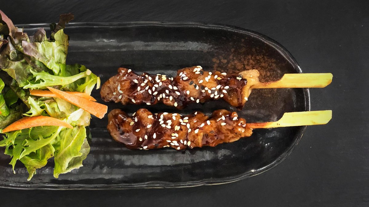 2 Stück gegrillte Hähnchenspieße nach japanischer Art