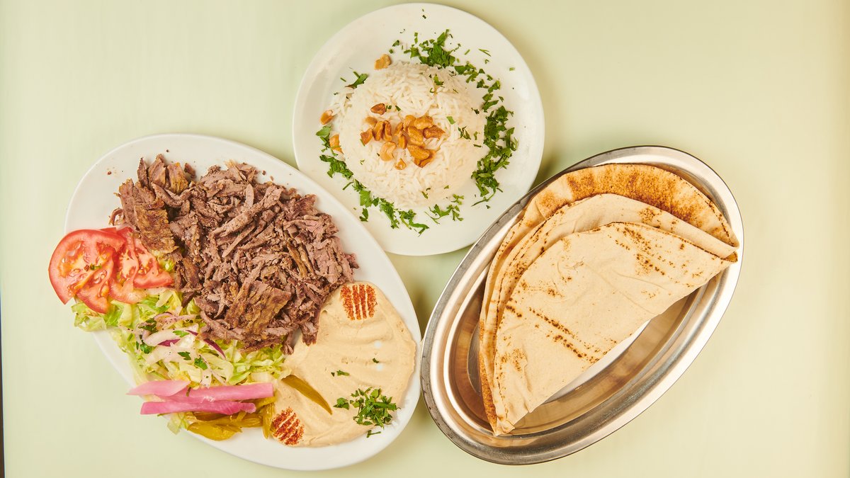 mit Rind-Schawarma und Salatteller