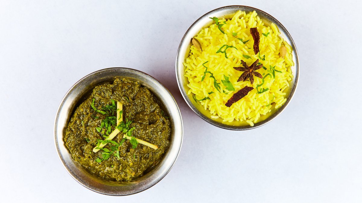 hausgemachter indischer Rahmkäse mit Spinat in pikanter Currysoße