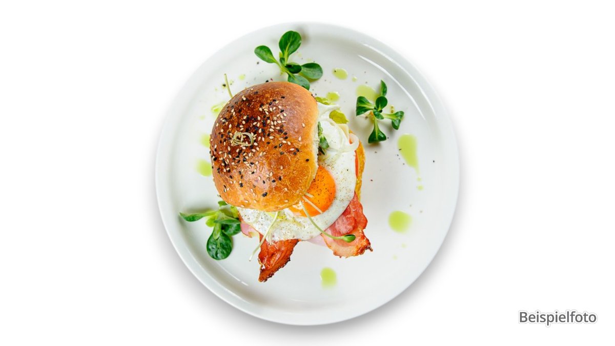 mit 150 g Rindfleisch, Speck vom Schwein, Cheddar, Spiegelei, Spezialsoße und Zwiebeln