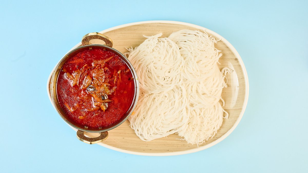 Frischkäse in scharfer Soße mit Ghee-Reis
