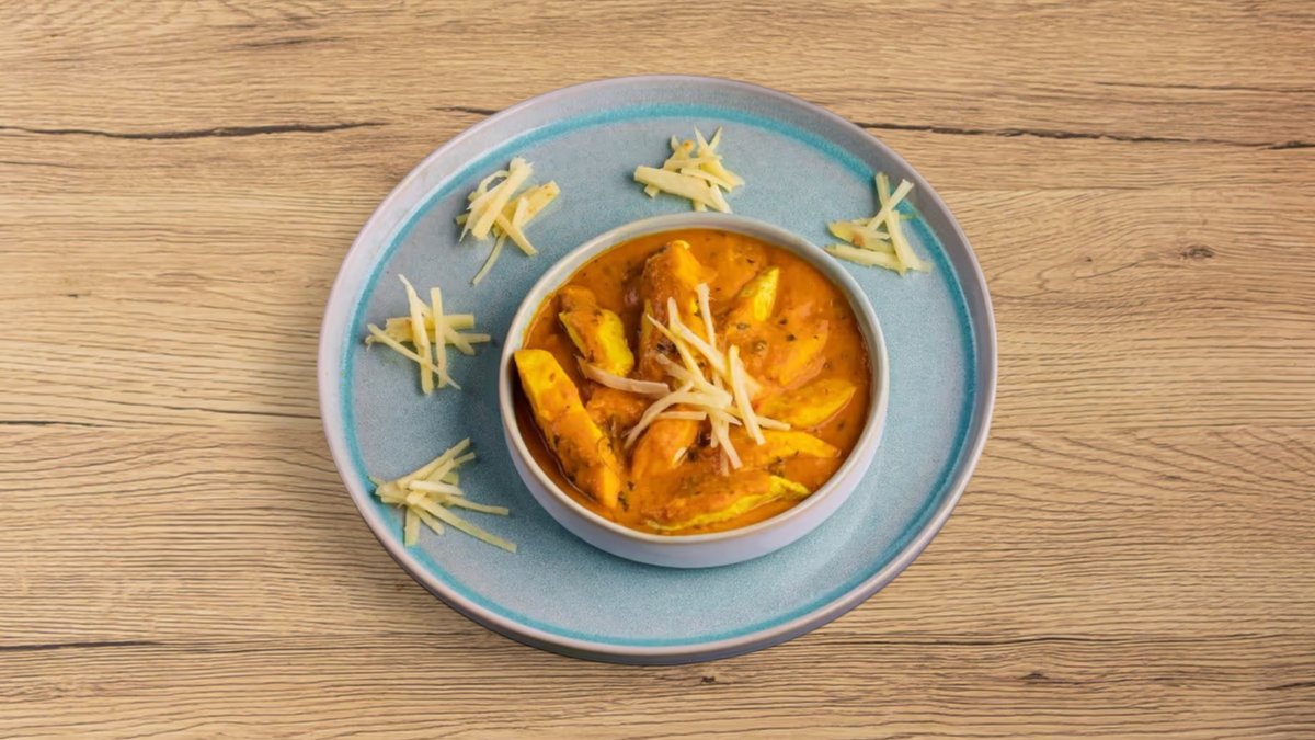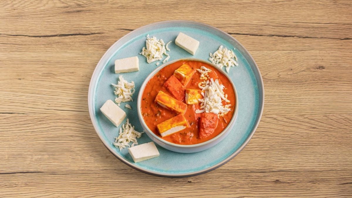 hausgemachter Paneer gebraten mit Nüssen und feinen indischen Gewürzen, serviert in einer Tomatensoße und abgerundet mit einem Hauch Ghee (indischer Butter)