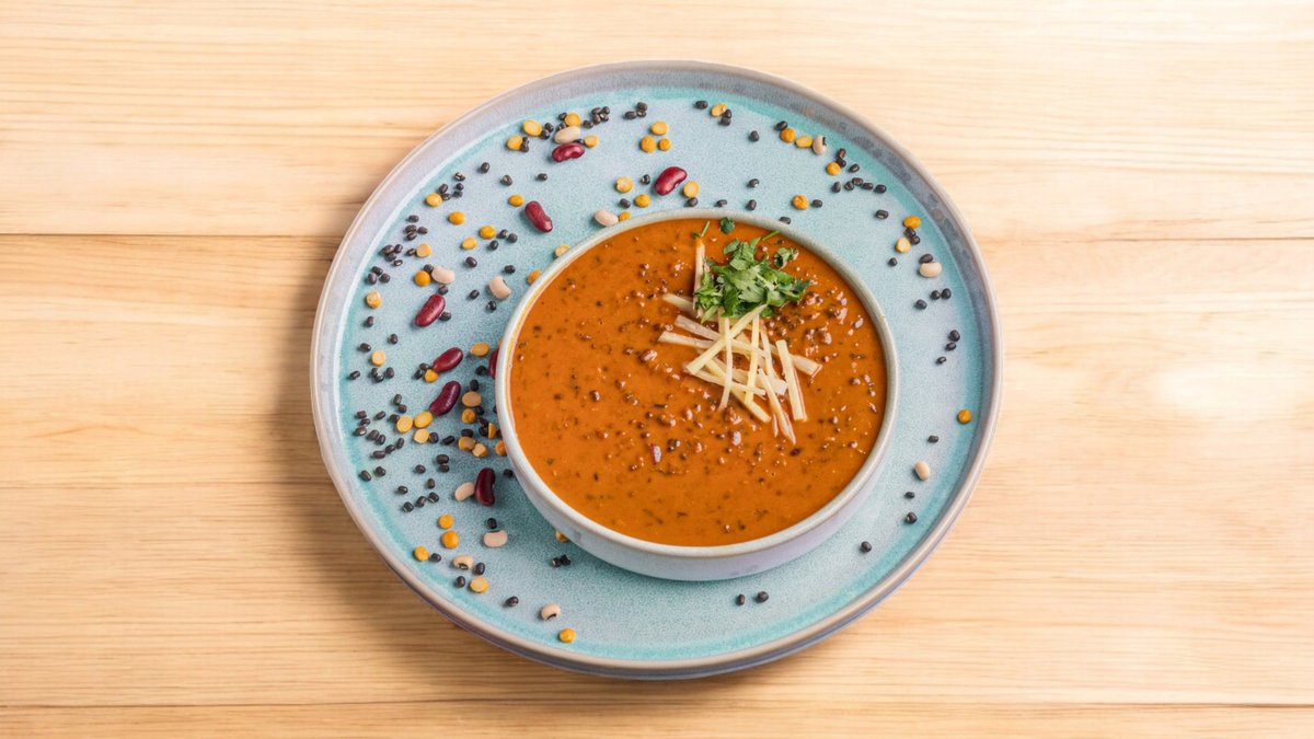verschiedene Linsen mit Knoblauch, frischem Ingwer und Tomaten, eine Nacht lang langsam über dem Lehmofen gegart, abgeschmeckt mit Ghee (indischer Butter) Da! ist eine traditionelle Speise aus Indien, die bei keinem guten Abendessen fehlen darf!