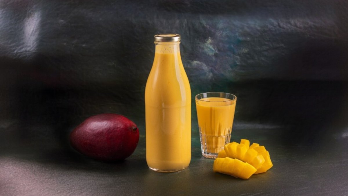 hausgemachter Lassi aus frischem Joghurt und Alphonso-Mangos aus Indien