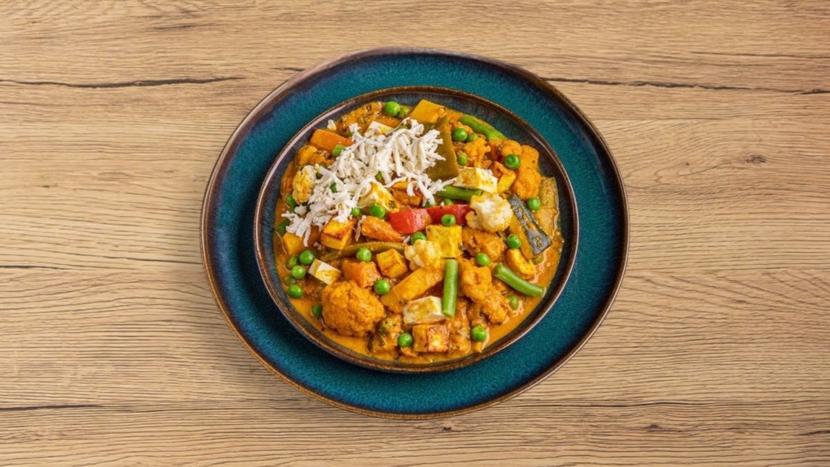 frisches Gemüse mit hausgemachtem Paneer in einer nordindischen Currysoße