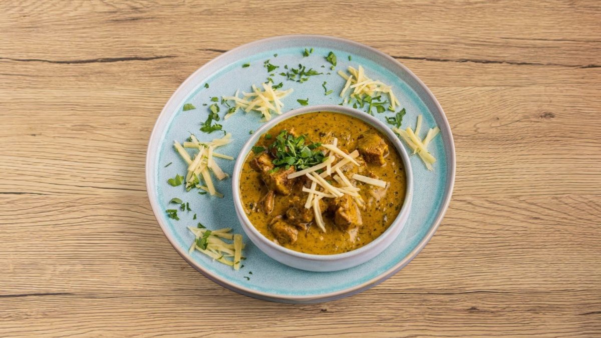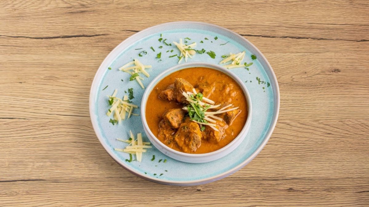 Lammfleisch in einer cremigen Soße aus Mandeln, Cashewnüssen und orientalischen Gewürzen, abgestimmt mit geriebenem Rahmkäse