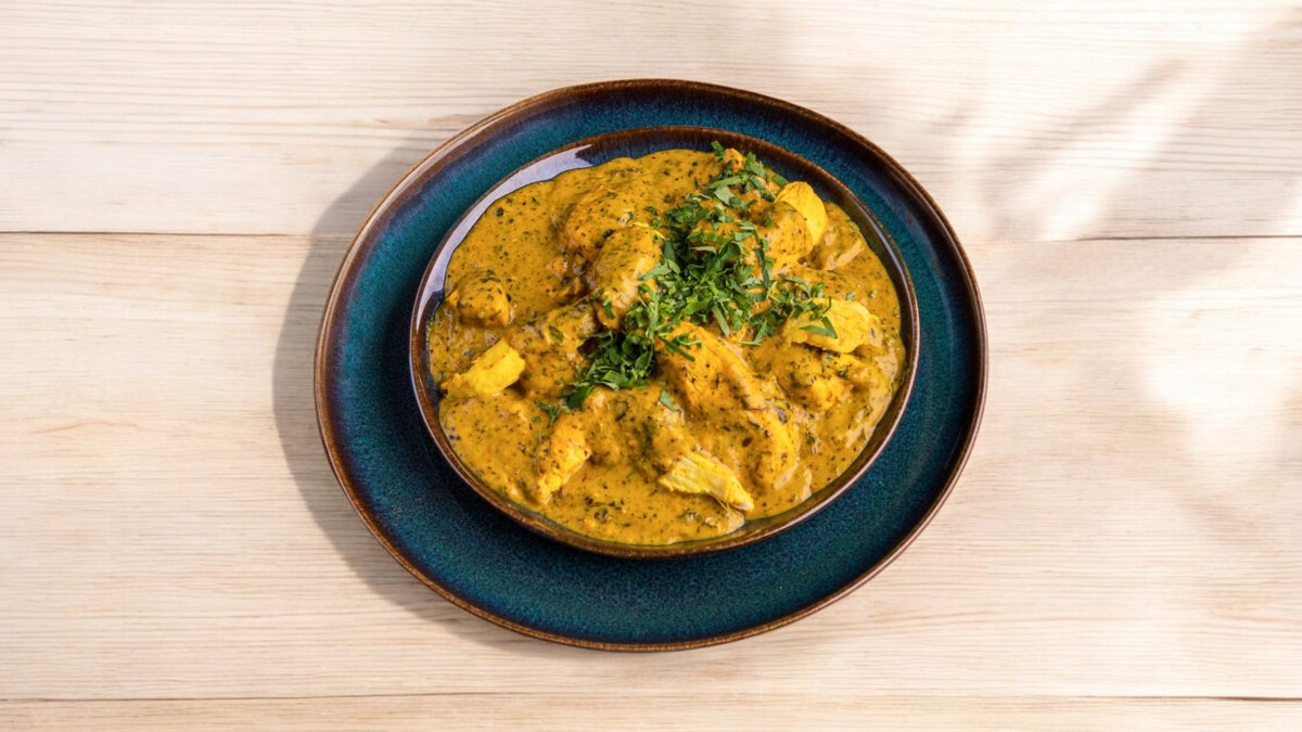 Hähnchenfilet in einer typischen Currysoße, nach nordindischer Art zubereitet