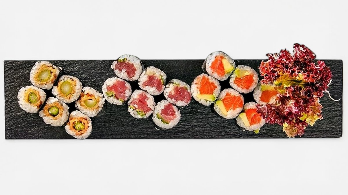 6 Stk. Sake Avocado Maki 6 Stk. Tekka Kappa Maki 6 Stk. Asparagus Tempura Maki