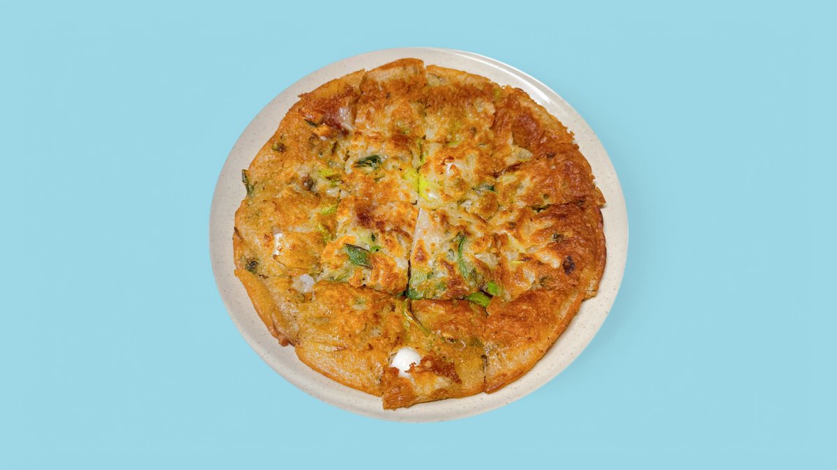 koreanische Pfannkuchen mit Meeresfrüchten und Lauch