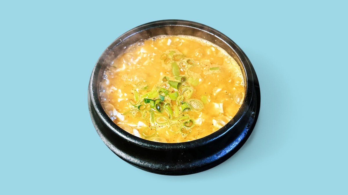 scharf Seidentofu-Suppe mit Meeresfrüchten und Gemüse