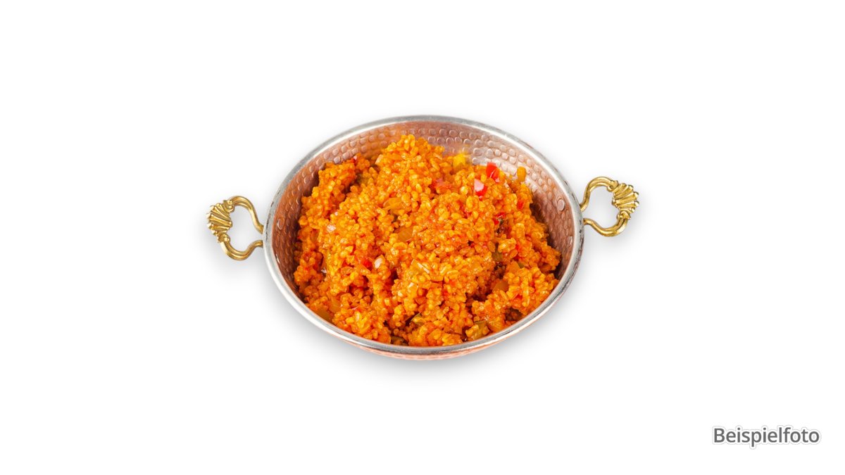 mittelscharf Würzig-scharfe Erdnuss-Tomatenstew mit weissem Duftreis. Dazu Okra, Auberginen und Austernpilze vom Grill.
