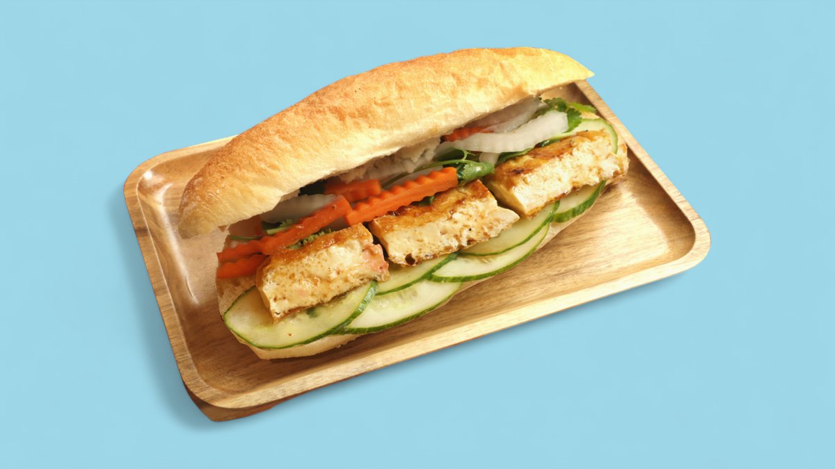 alle Gerichte werden mit einem vietnamesischen Baguette aus Weizenmehl serviert, mit knackigen Gurken, würzigem Karotten-Rettich-Salat und frischem Koriander gefüllt und mit einer würzigen hausgemachten Soße beträufelt