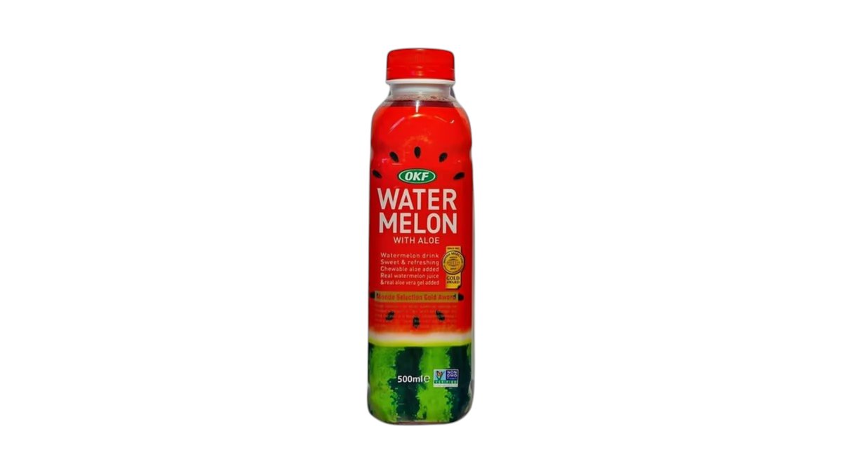 Aloe Vera Getränk mit Wassermelonengeschmack, enthält Fruchtstückchen, Zucker, ohne Kohlensäure