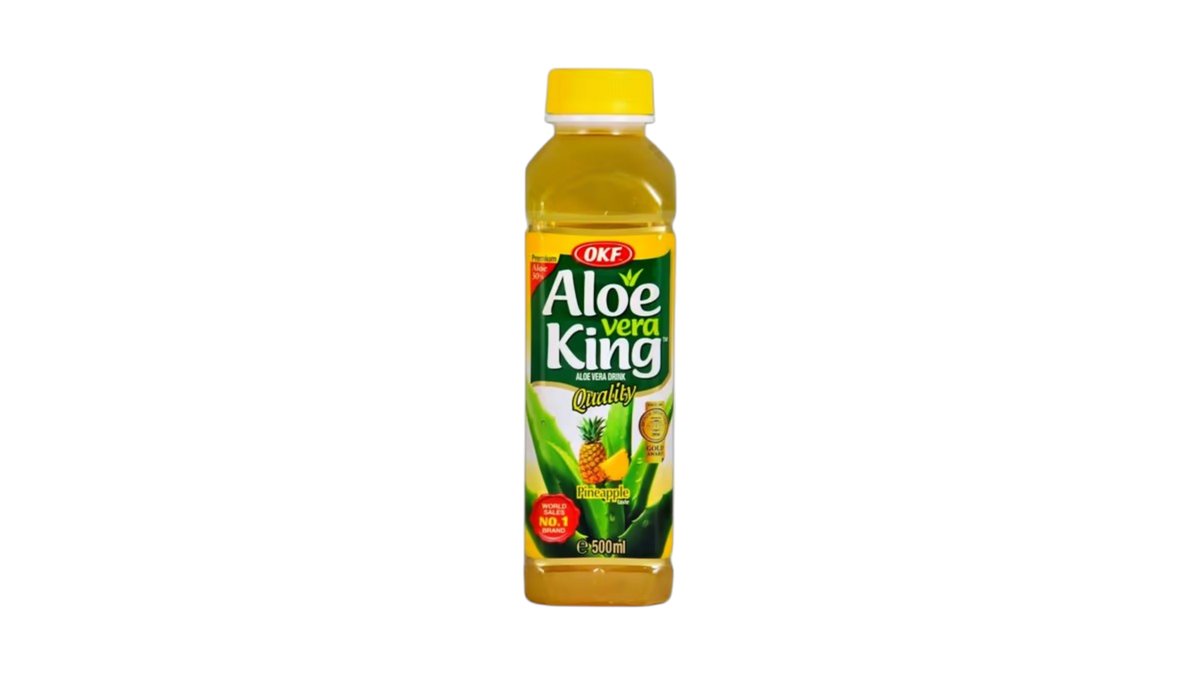 Aloe Vera Getränk mit Ananasgeschmack, Zucker, Fruchtstückchen enthalten