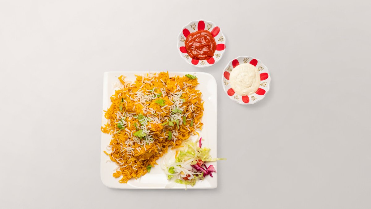 alle Gerichte werden mit Tomaten und Currysoße zubereitet („Qabul Palaw” wird ohne Tomaten und Currysoße zubereitet)