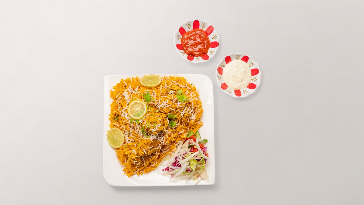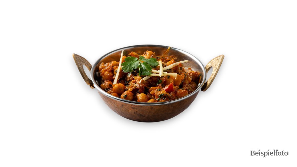 alle Gerichte werden mit Tomaten und Currysoße zubereitet („Qabul Palaw” wird ohne Tomaten und Currysoße zubereitet)