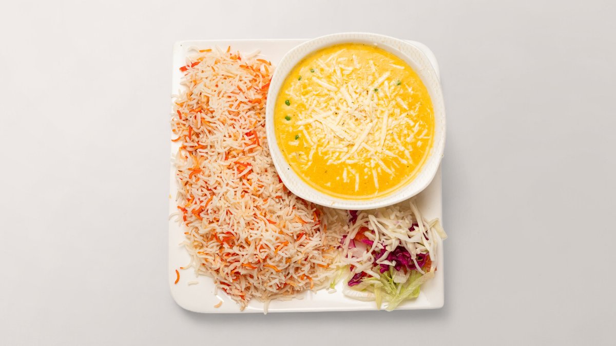 alle Gerichte werden mit Basmatireis, Saisongemüse und Salat zubereitet