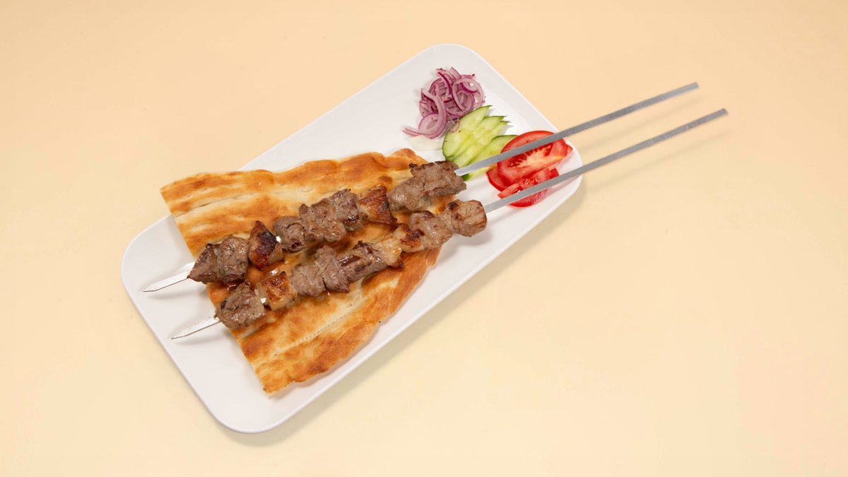 2 Stück Lammspieẞe mit Brot und Salatbeilage