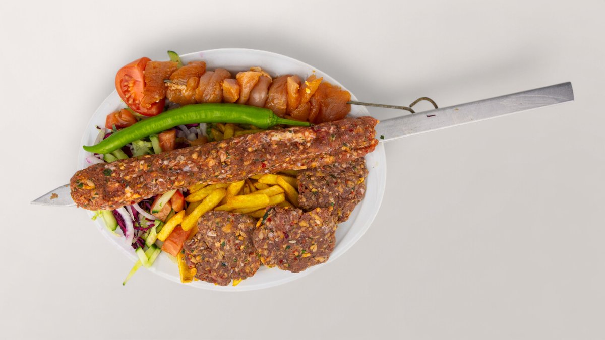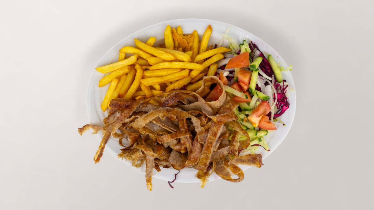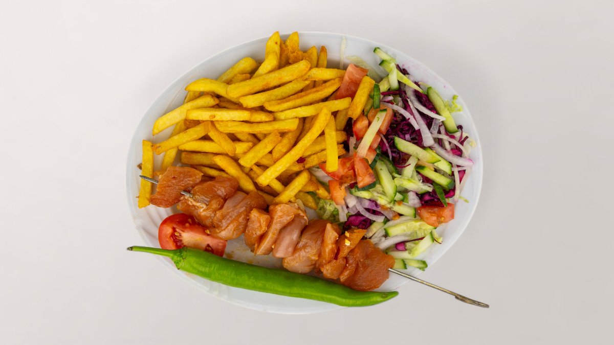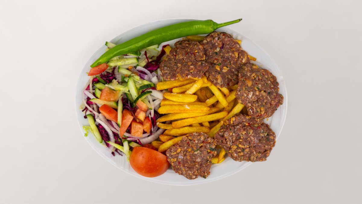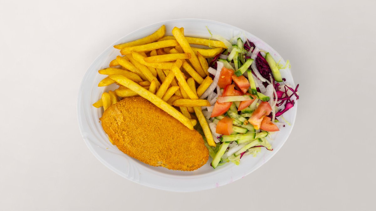 alle Gerichte werden mit Senf, Gurken, Zwiebeln, Tomaten und Salat zubereitet